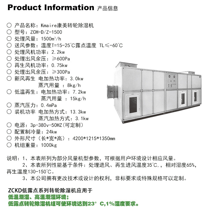 ZCKD低露點轉輪除濕機組ZCH-D/Z-1500